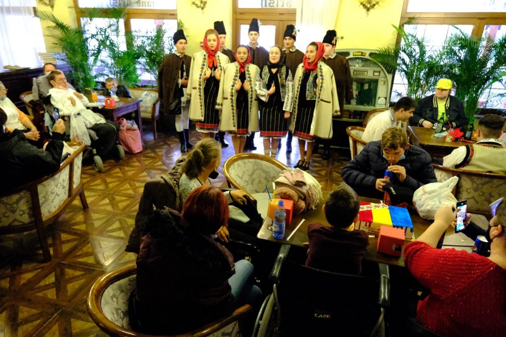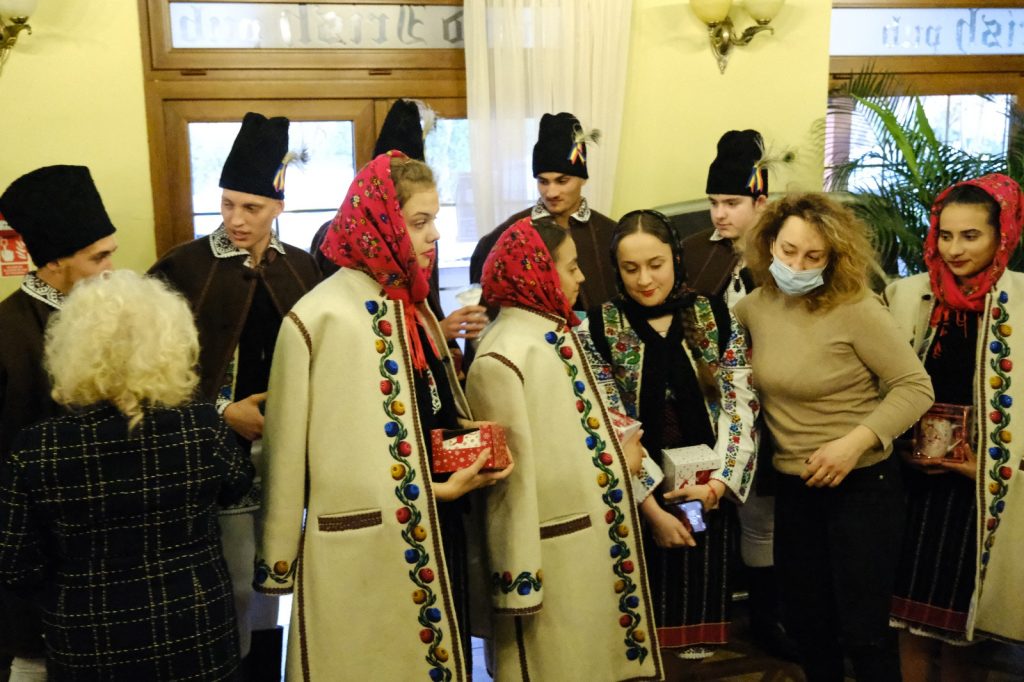 Este vorba despre membrii Ansamblului „Cununa Bălușeni”, coordonați de primarul Claudiu Doroftei , dar și de 4 tineri cu deficiențe de vedere, care au oferit daruri muzicale persoanelor cu deficiențe locomotorii.