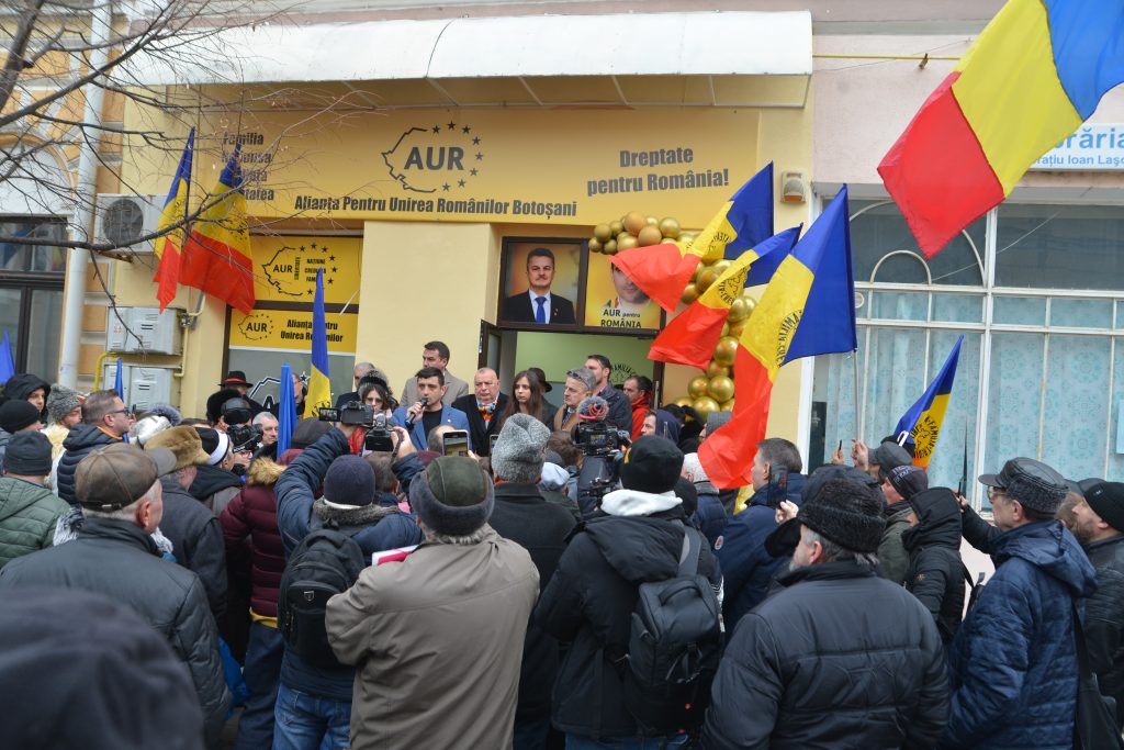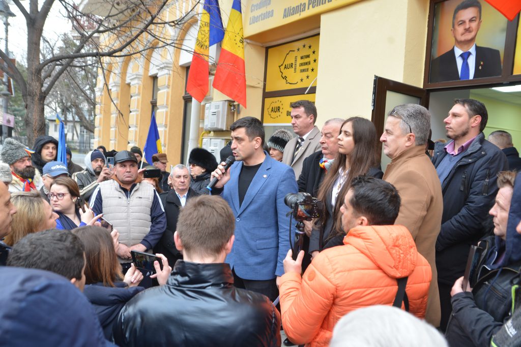 Astăzi botoșănenii au fost martorii unui eveniment unic la Botoșani, unic din mai multe puncte de vedere. În primul rând deoarece, pentru prima dată în istoria AUR Botoșani, a avut loc o întâlnire cu presa și cu botoșănenii, membri sau simpatizanți, așa cum nu a fost de la înființare. Coordonatori locali, membri și ne-membri, trecători și turiști, toți au văzut o organizare impecabilă. Ba chiar și cineva venit din Italia, originar din Botoșani, a avut o discuție tot la Botoșani cu liderul George Simion pentru înființarea unei filiale într-una din regiunile Italiei. Apoi, ca niciodată, impresia, semnalul, aparența a ost de unitate. Cel puțin azi au dispărut bisericuțele și trădătorii din AUR Botoșani. Sau poate tocmai pentru că au plecat trădătorii totul a decurs altel. Și nu în ultimul rând, George a susținut o pseudo conferință de presă afară, pe treptele sediului din centrul istoric al municipiului Botoșani. Întâlnirea a fost prilejuită de inaugurarea ca la carte a noului sediu al organizației municipale, coordonată de Cilibiu. În același spațiu va funcționa de astăzi și cabinetul deputatului Radu Grădinaru. George a fost omenit cu o pâine mare având forma României neciuntite de năpârcile sovietice, iar toată suflarea prezentă a fost omenită cu ceaiuri, cafele și plăcinte produse de celebrul producător al cozonacului domnesc.