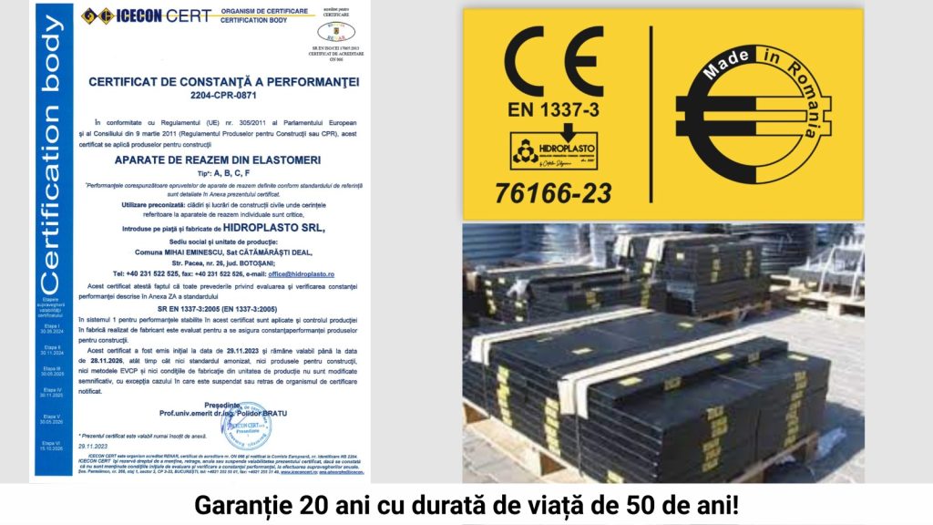 Sunt încântat să anunț că Hidroplasto a obținut Certificatul C.E. pentru producția aparate de reazem pentru poduri si Agrementul tehnic pentru fabricarea de dispozitive inovatoare destinate rosturilor de dilatație.